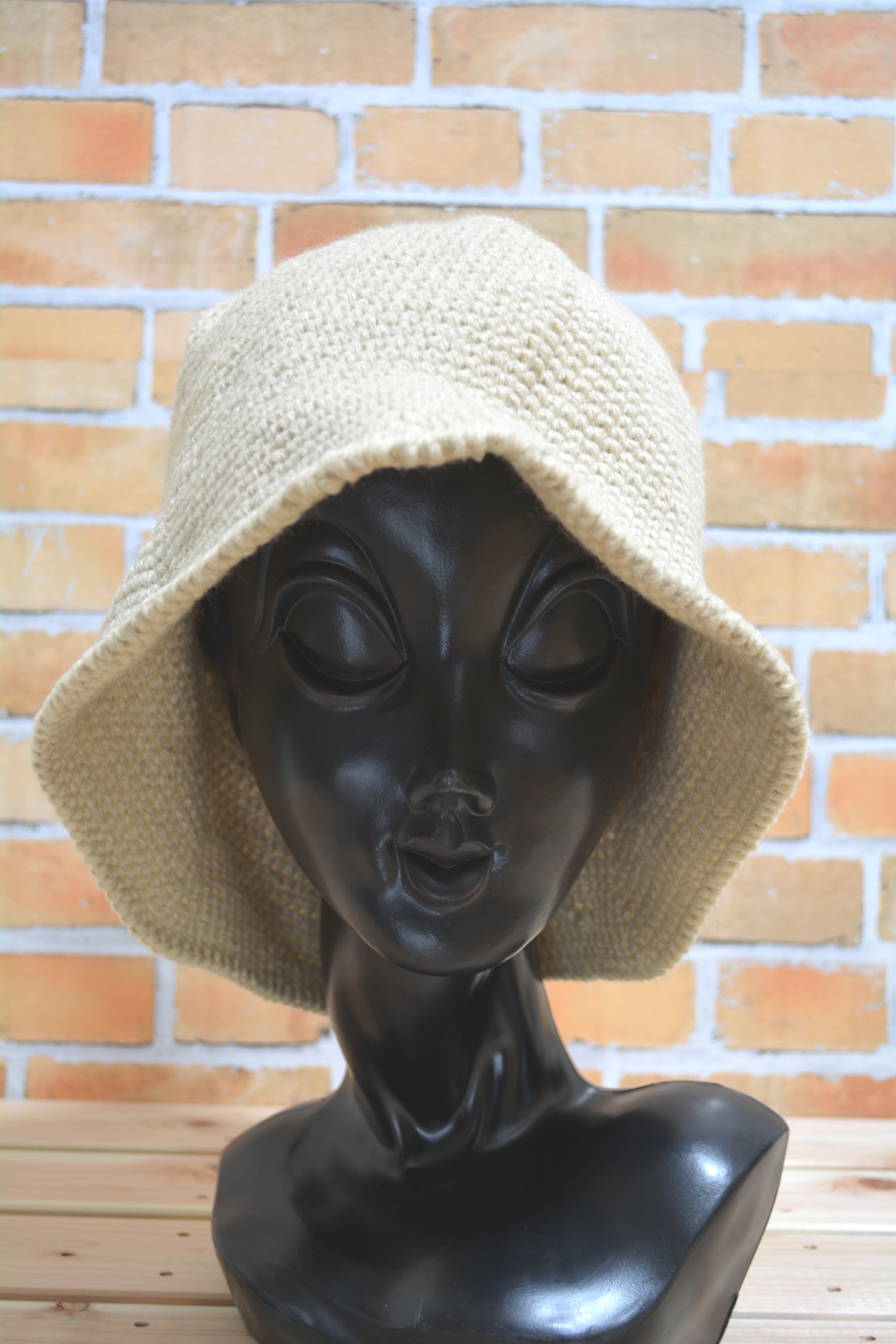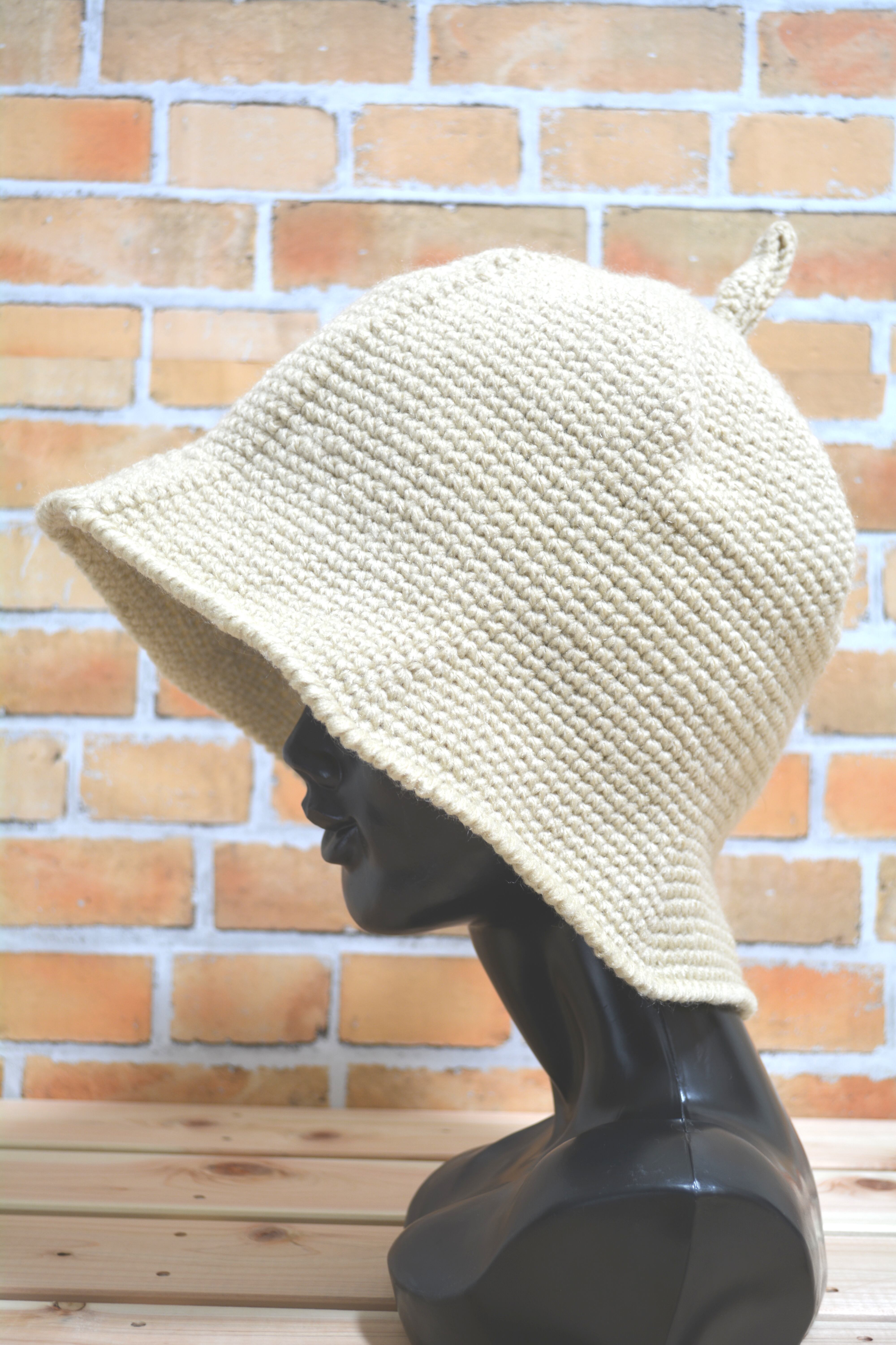 ニットでできたサウナハット オールベージュ ロングタイプ