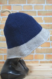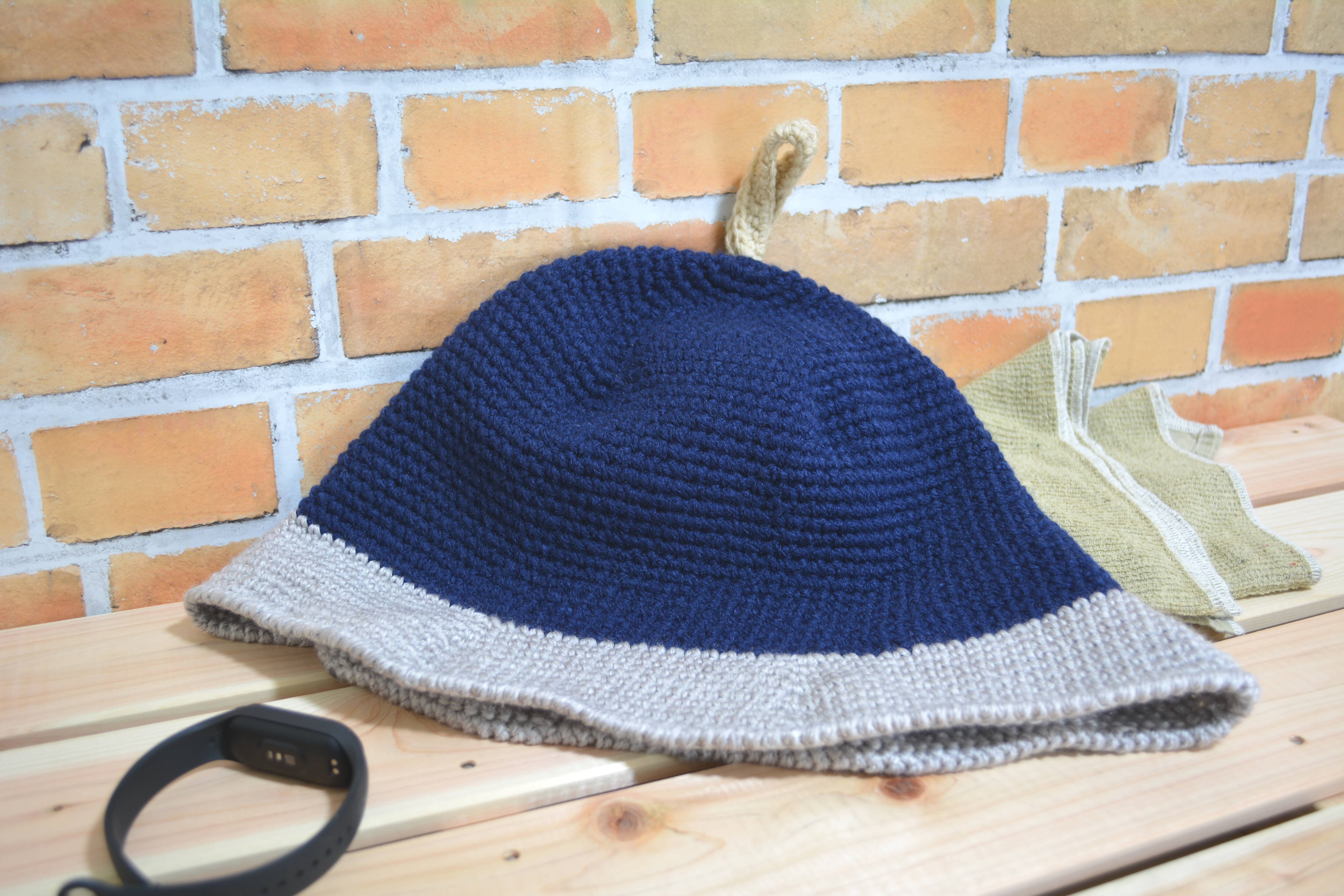 ニットでできたサウナハット ネイビーグレー ロングタイプ