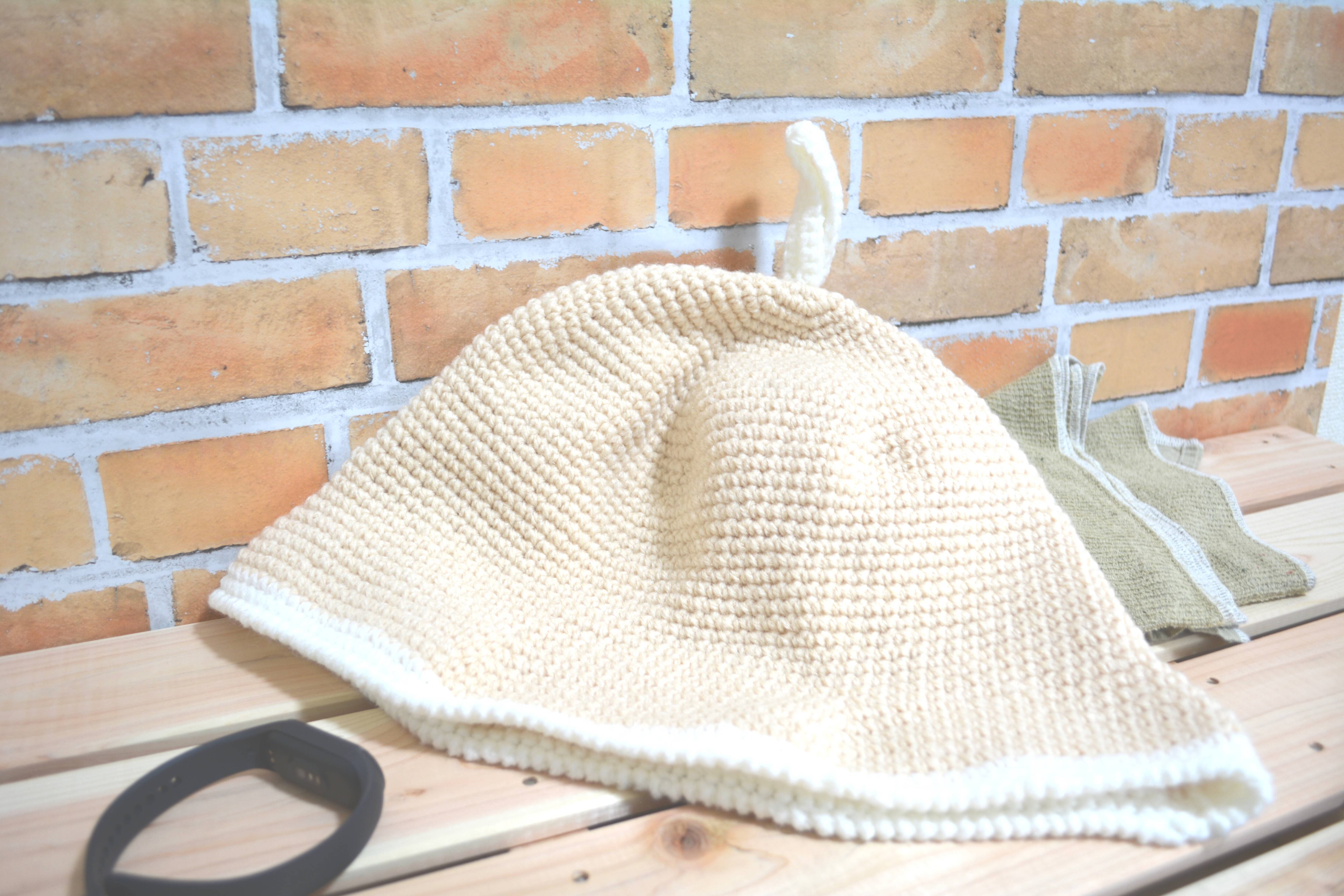 アクリルニットのサウナハットは適度に熱が抜けてのぼせにくく