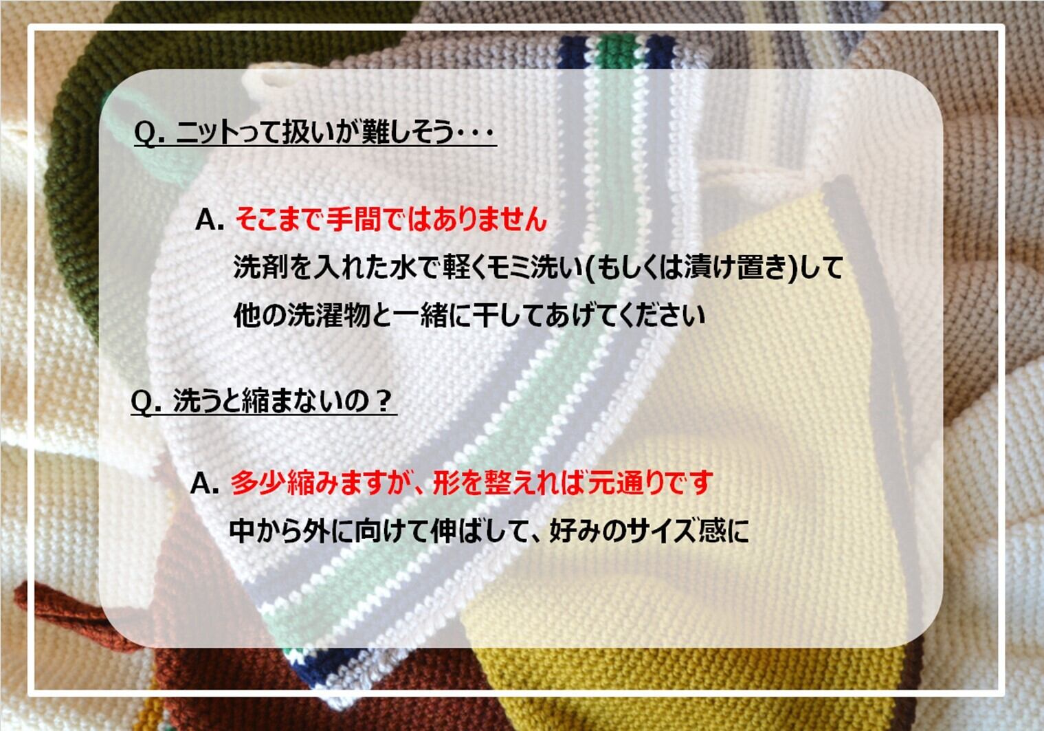 香り優しめの洗剤でやさしくもんであげてください