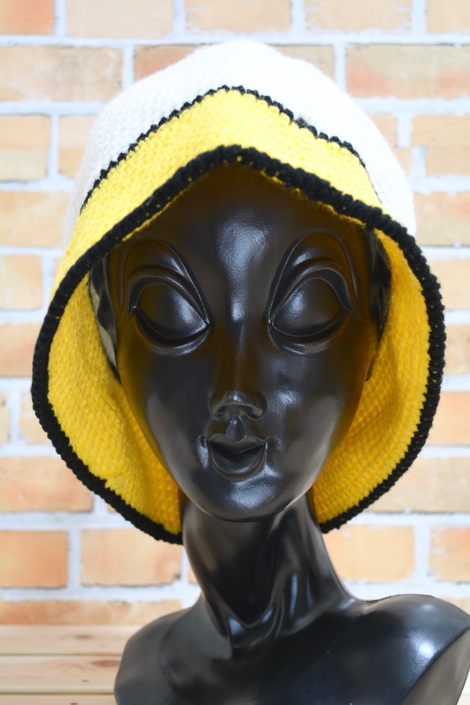 ニットでできたサウナハット 赤白黄 ロングタイプ