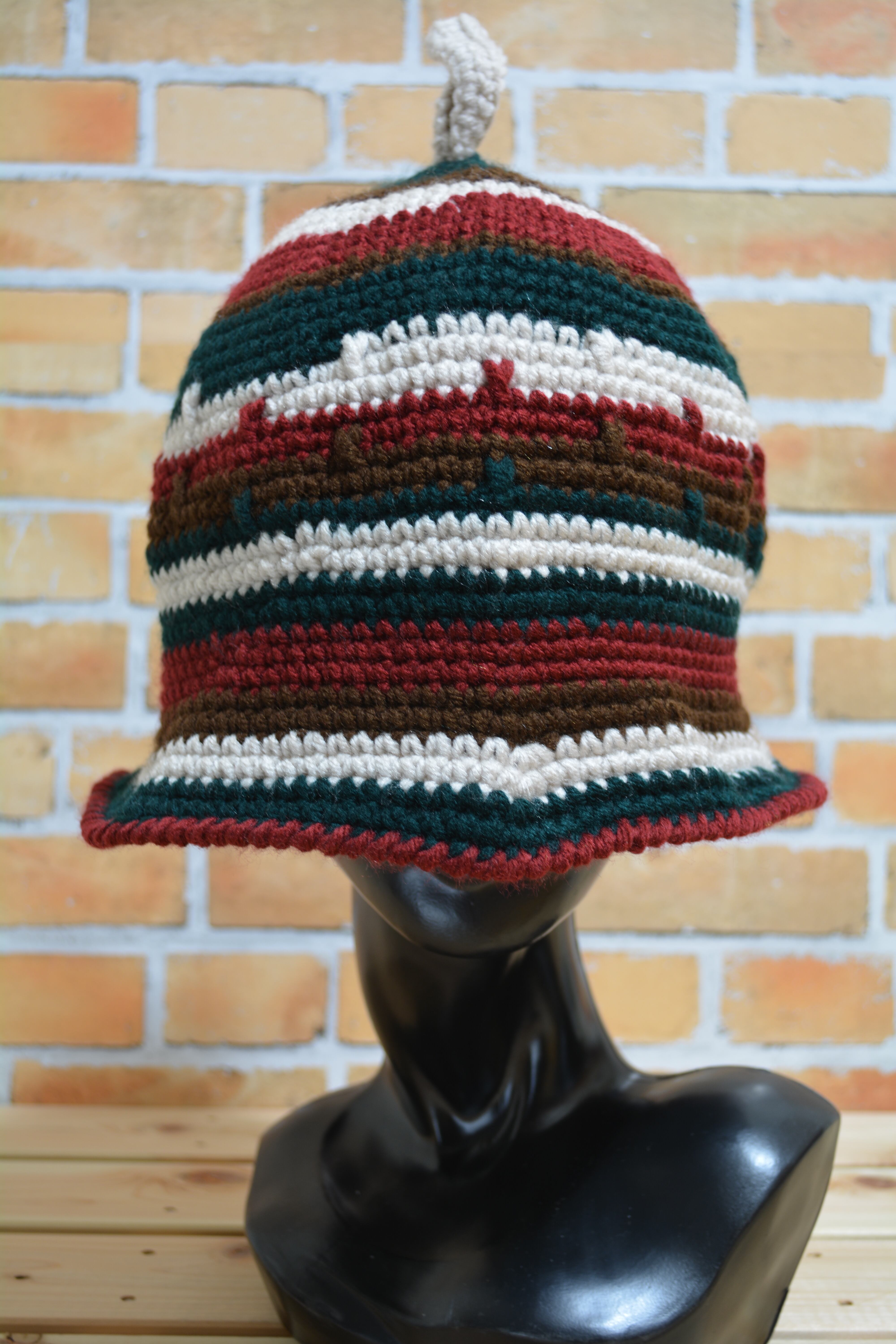 ニットでできたサウナハット グリーン x ベージュ ロングタイプ
