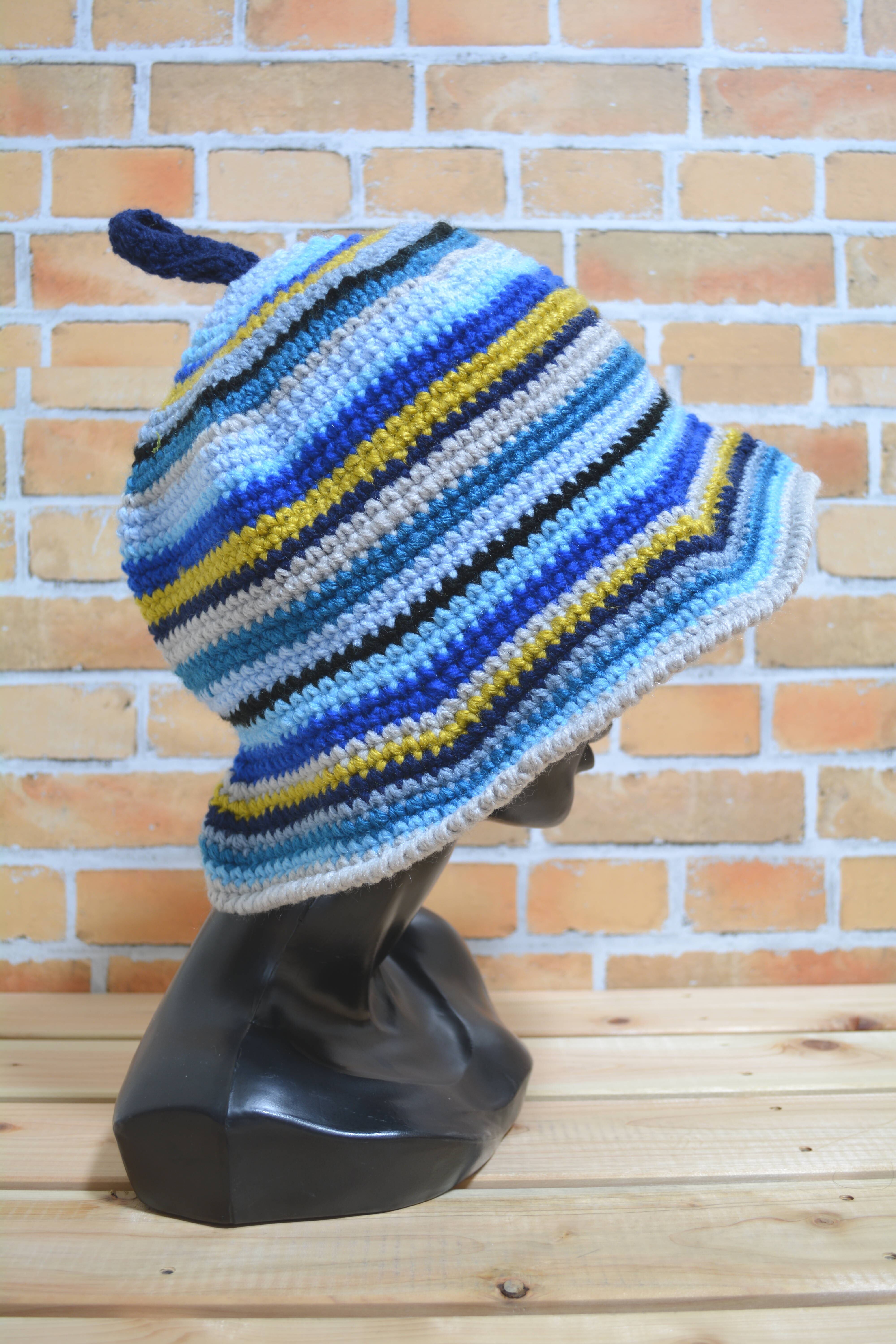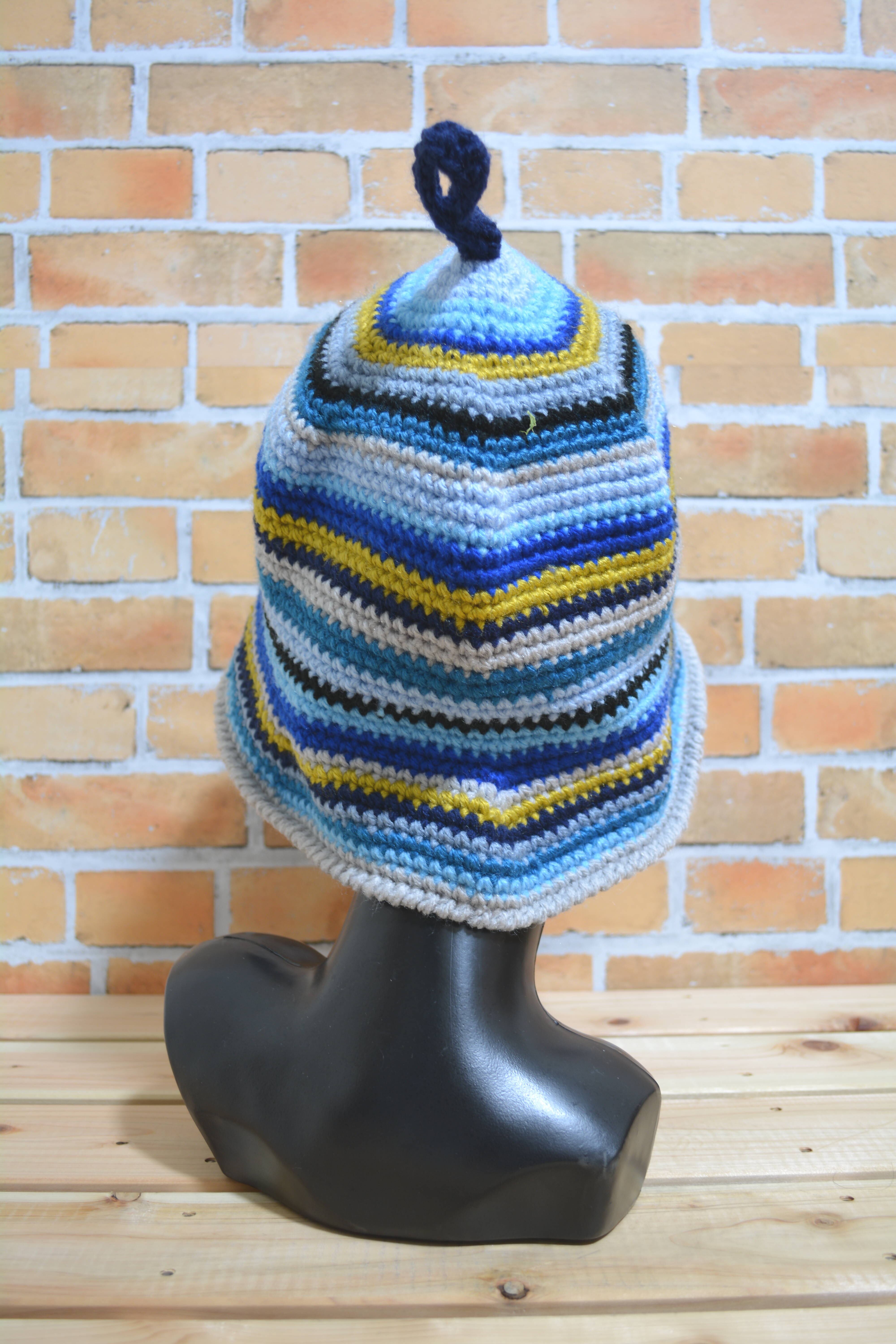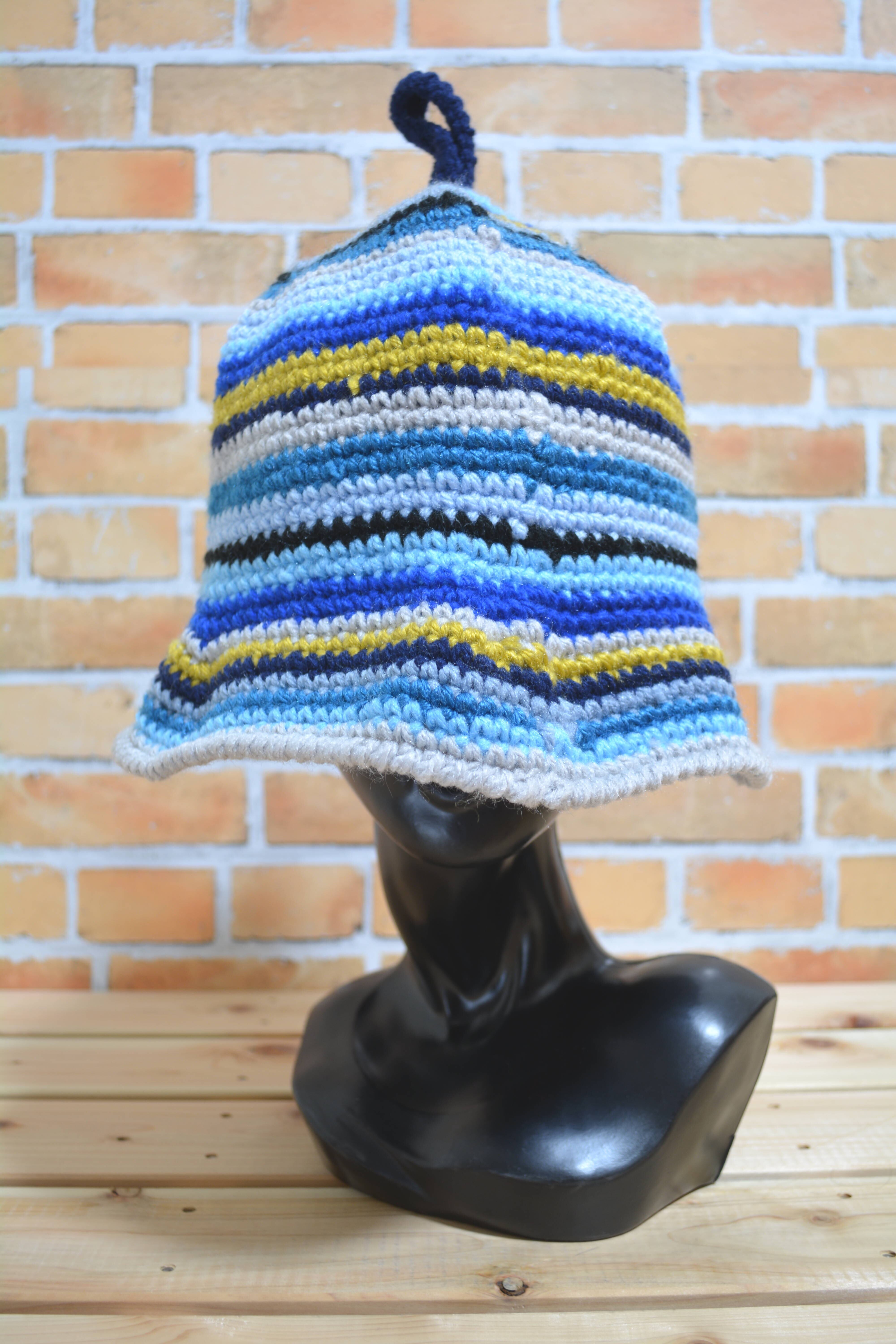 ニットでできたサウナハット マルチブルー ロングタイプ