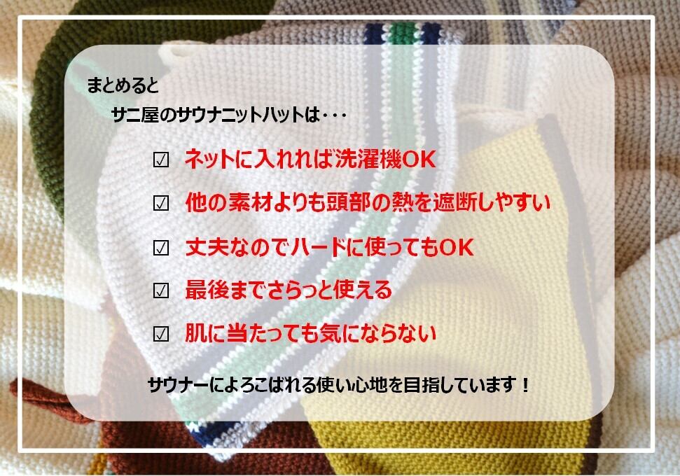 アクリルニットのサウナハットは適度に熱が抜けてのぼせにくく