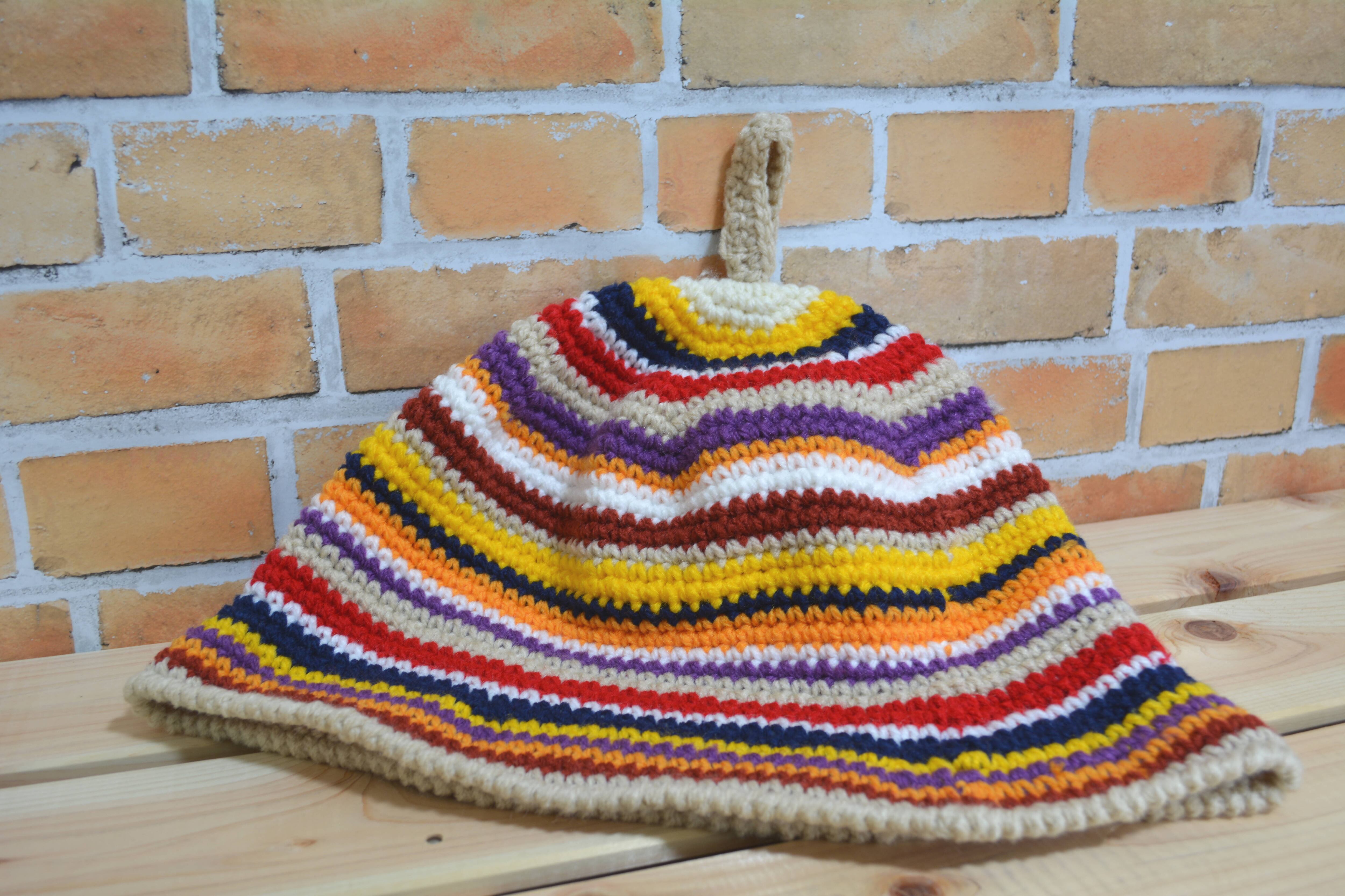 ニットでできたサウナハット マルチレッド ロングタイプ