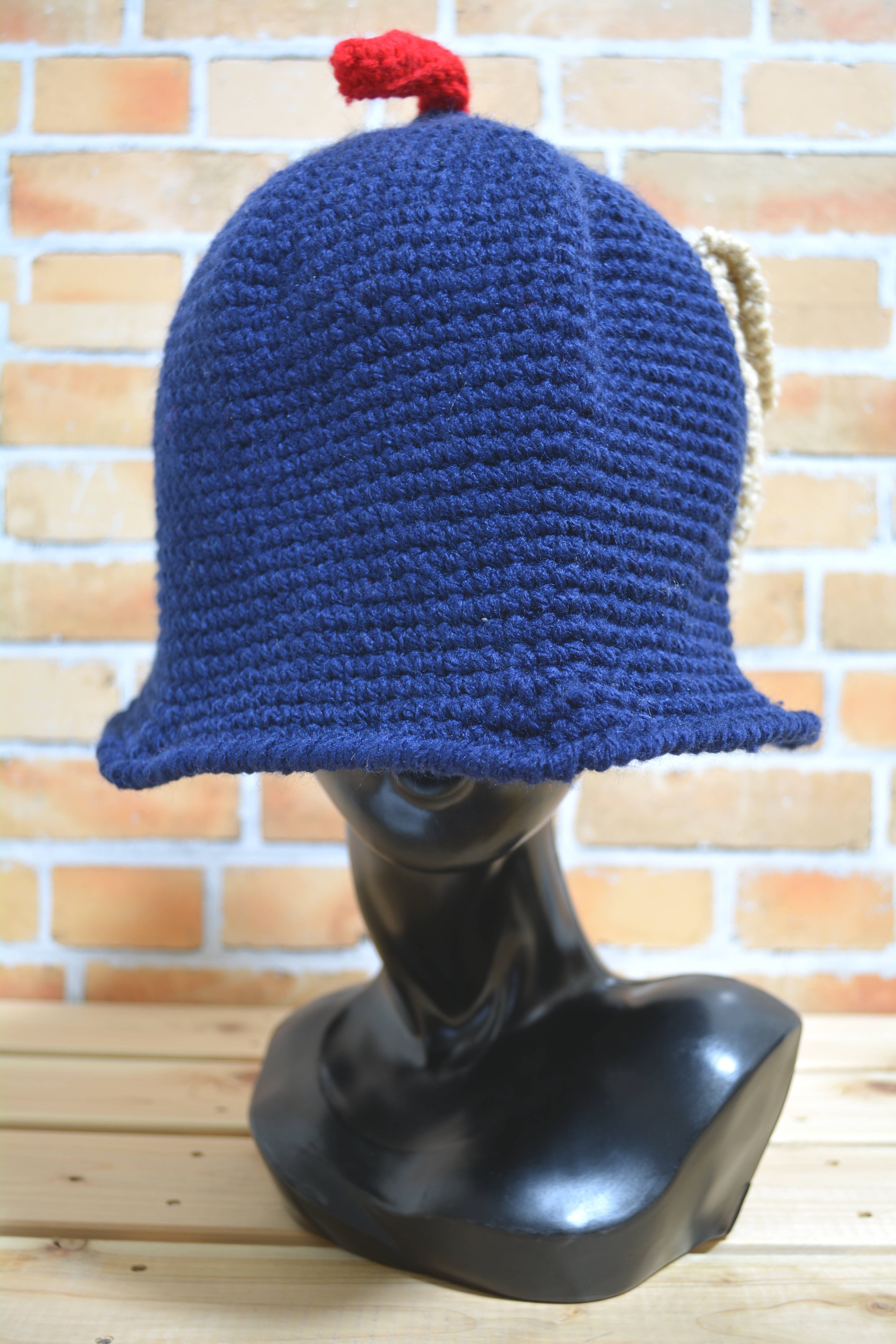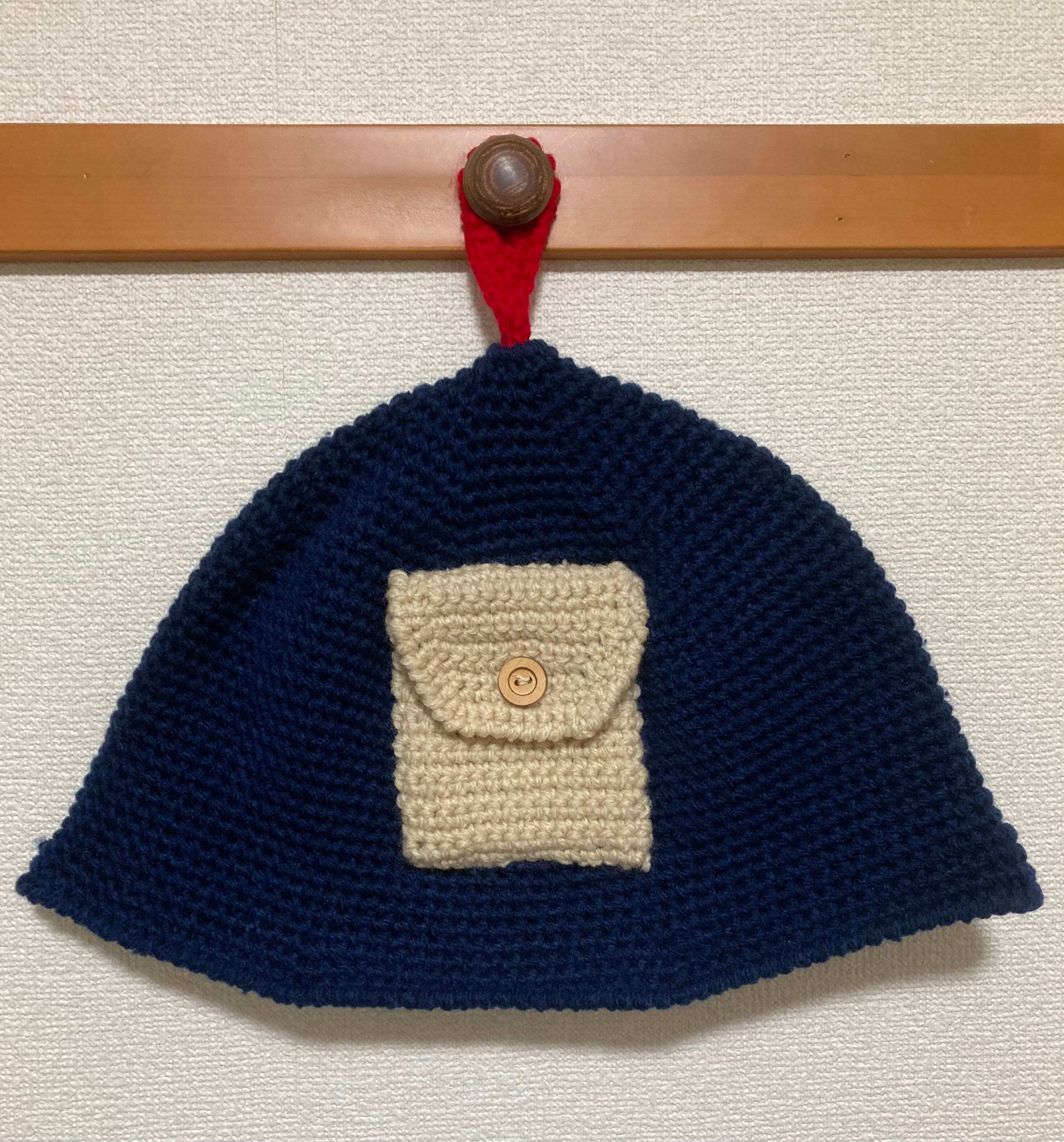 ニットでできたサウナハット ネイビーポケット ロングタイプ
