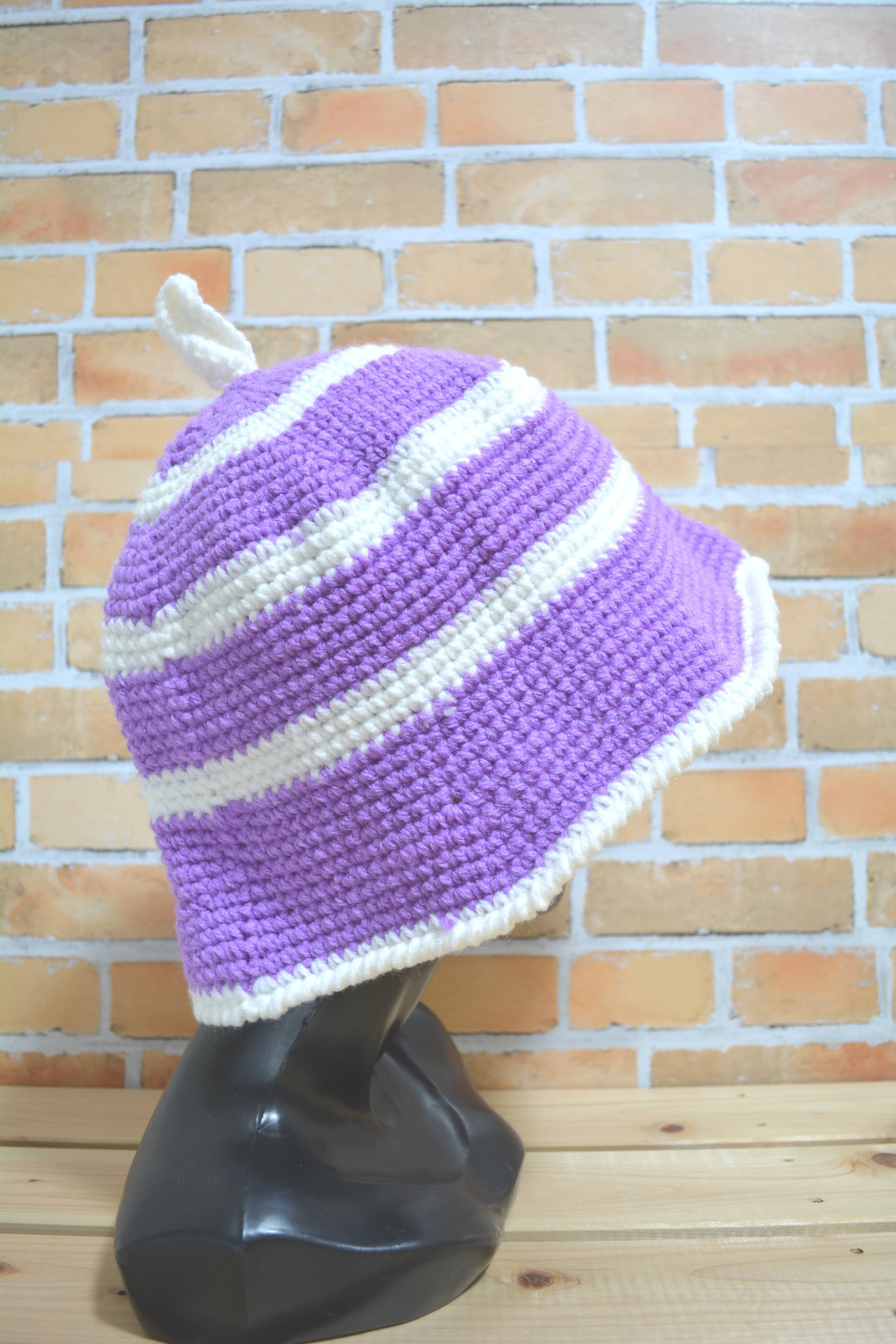 ニットでできたサウナハット パープルxホワイト ロング