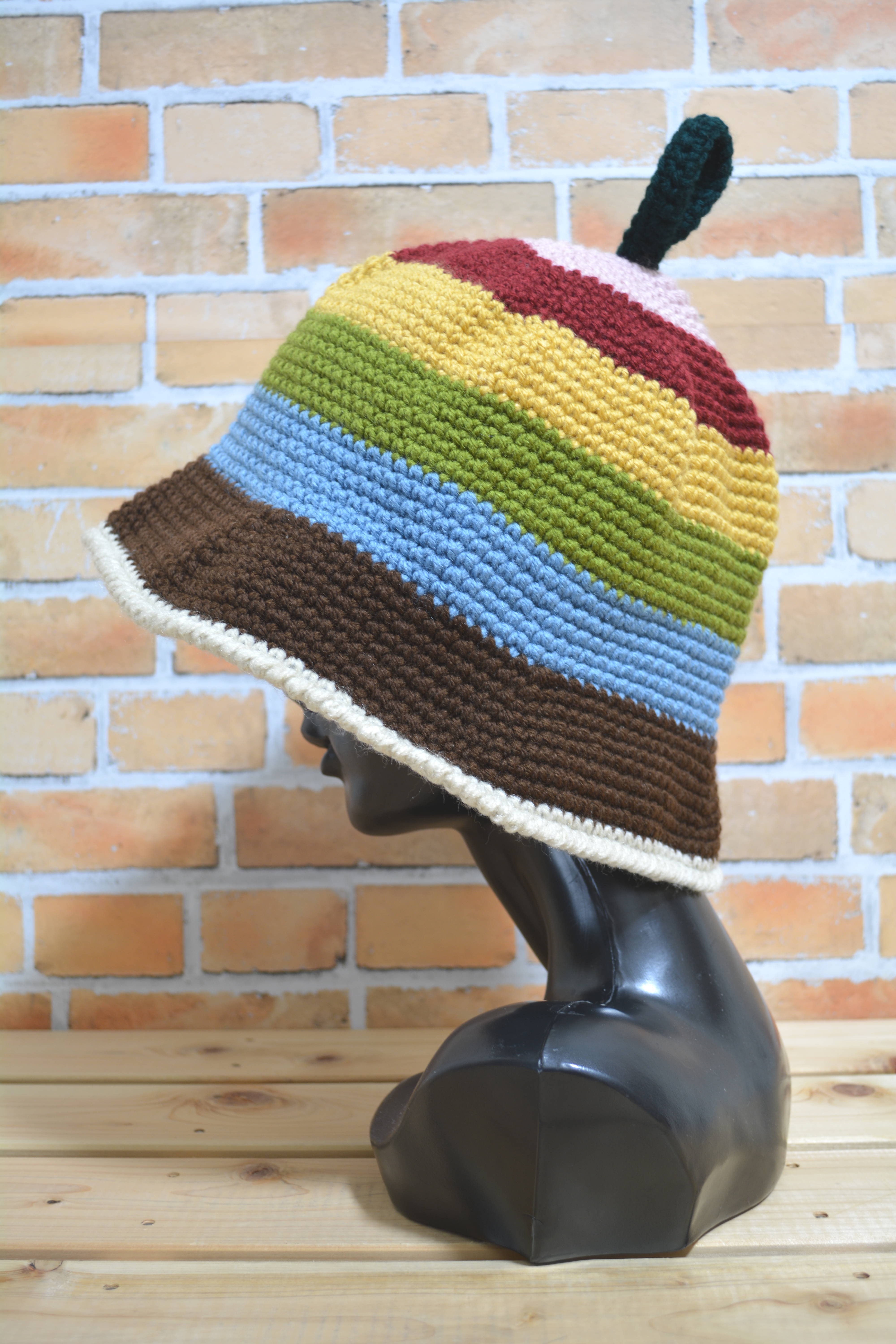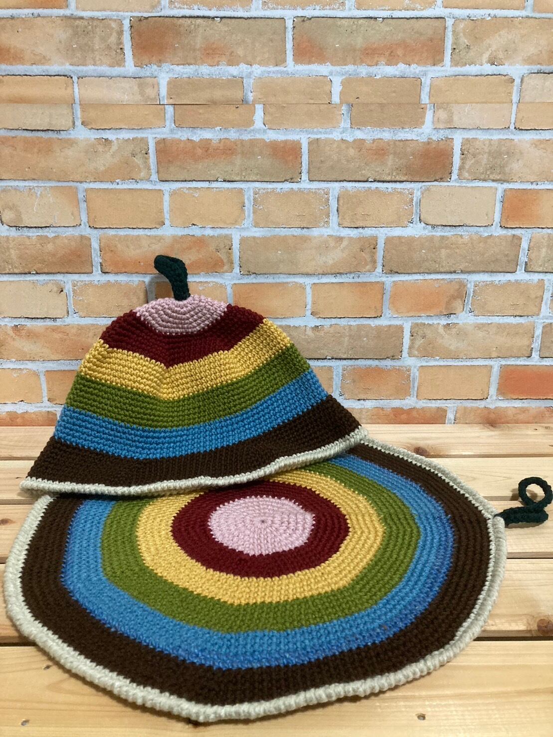ニットでできたサウナハット マルチカラー ひかえめレインボー ロング