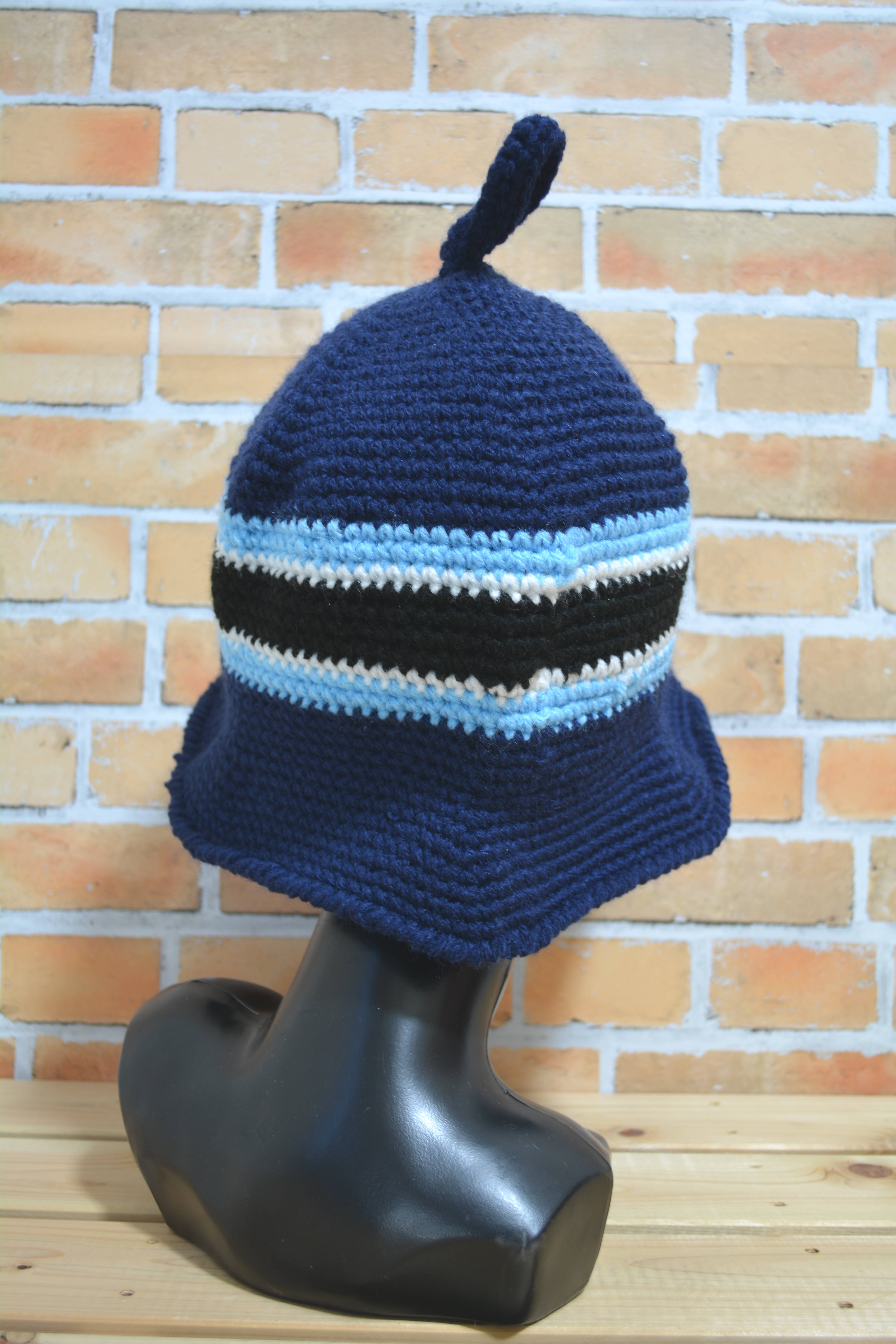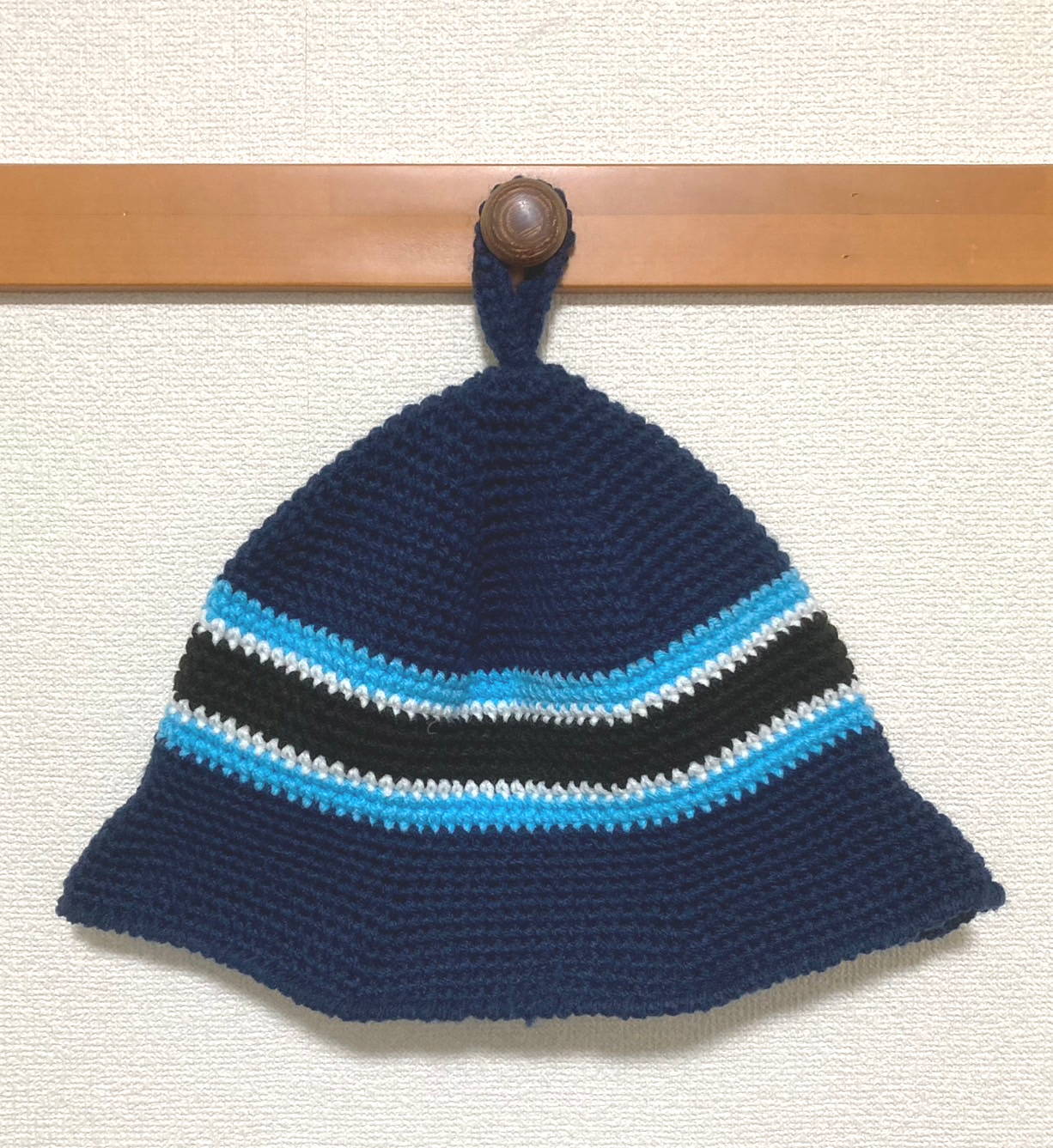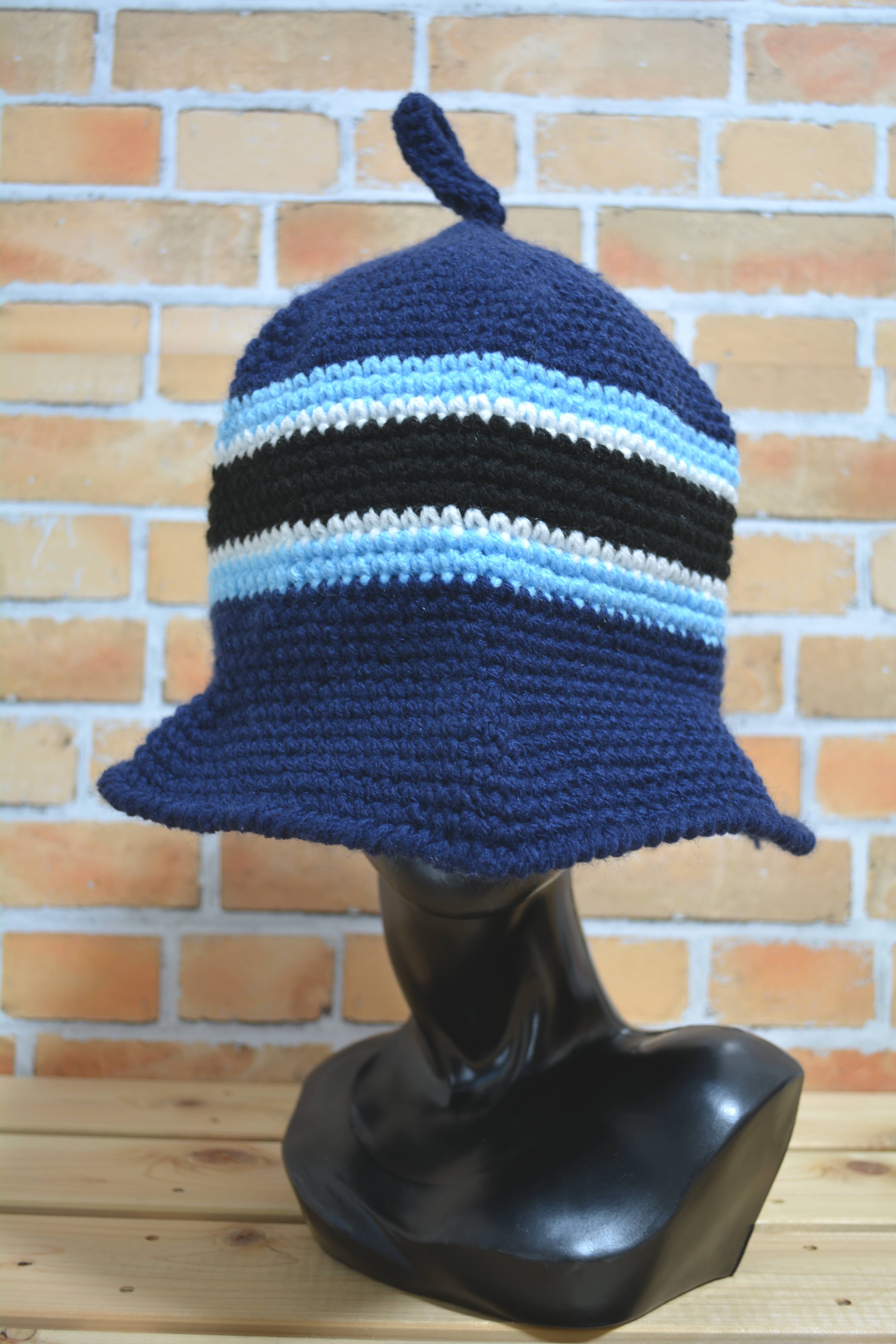 ニットでできたサウナハット ボーダー ネイビーxブラック ロング