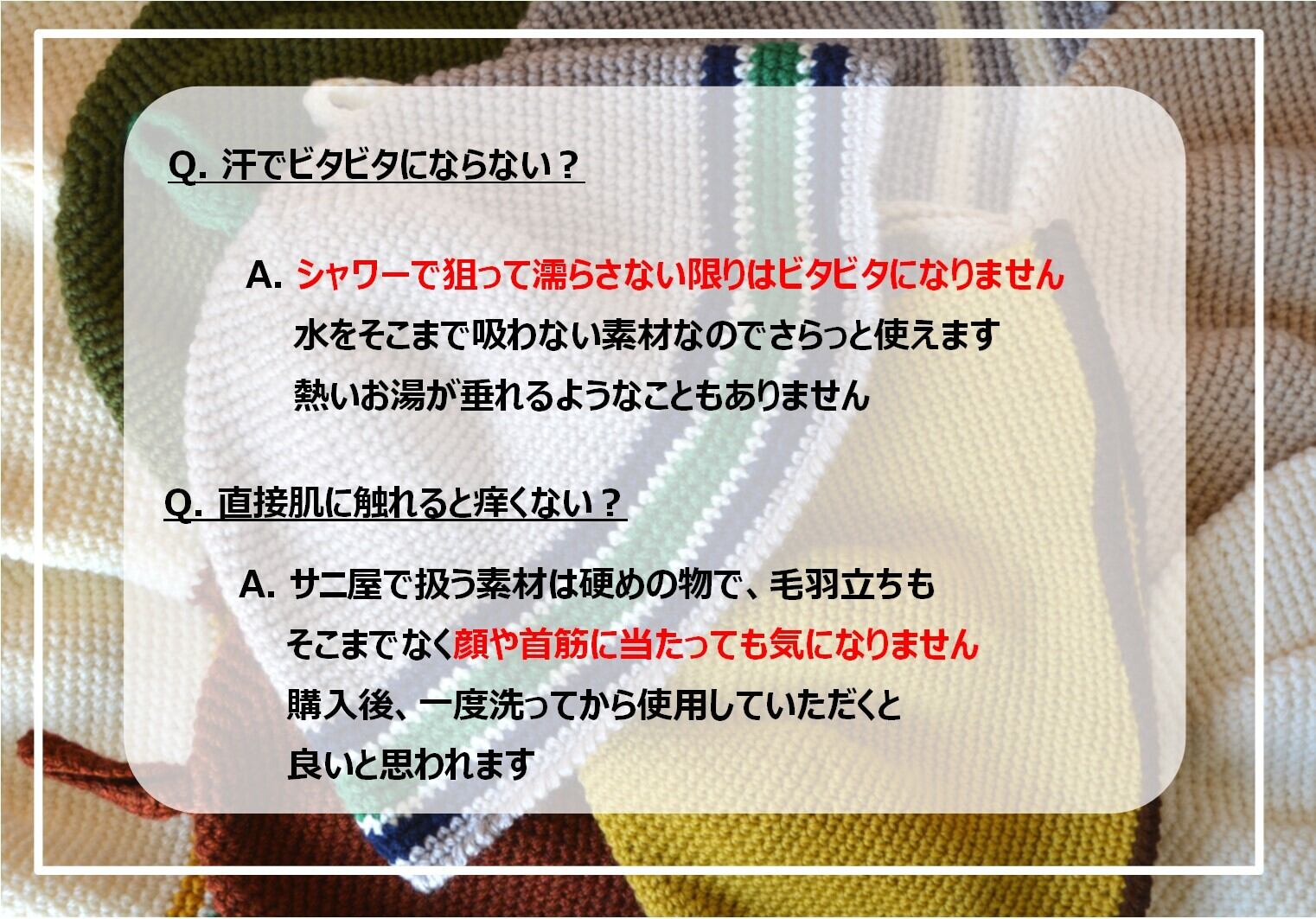 アクリルニットのサウナハットは適度に熱が抜けてのぼせにくく
