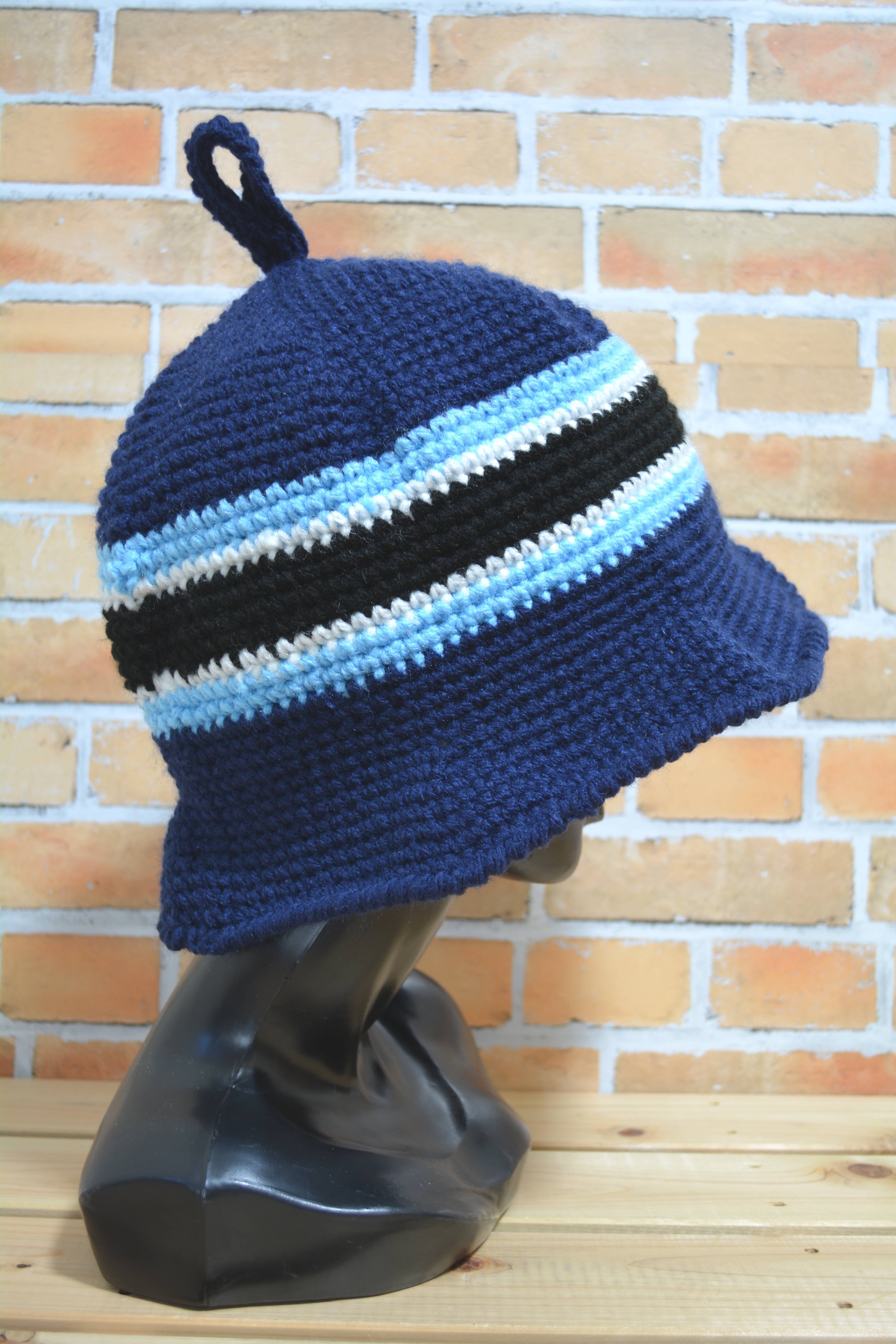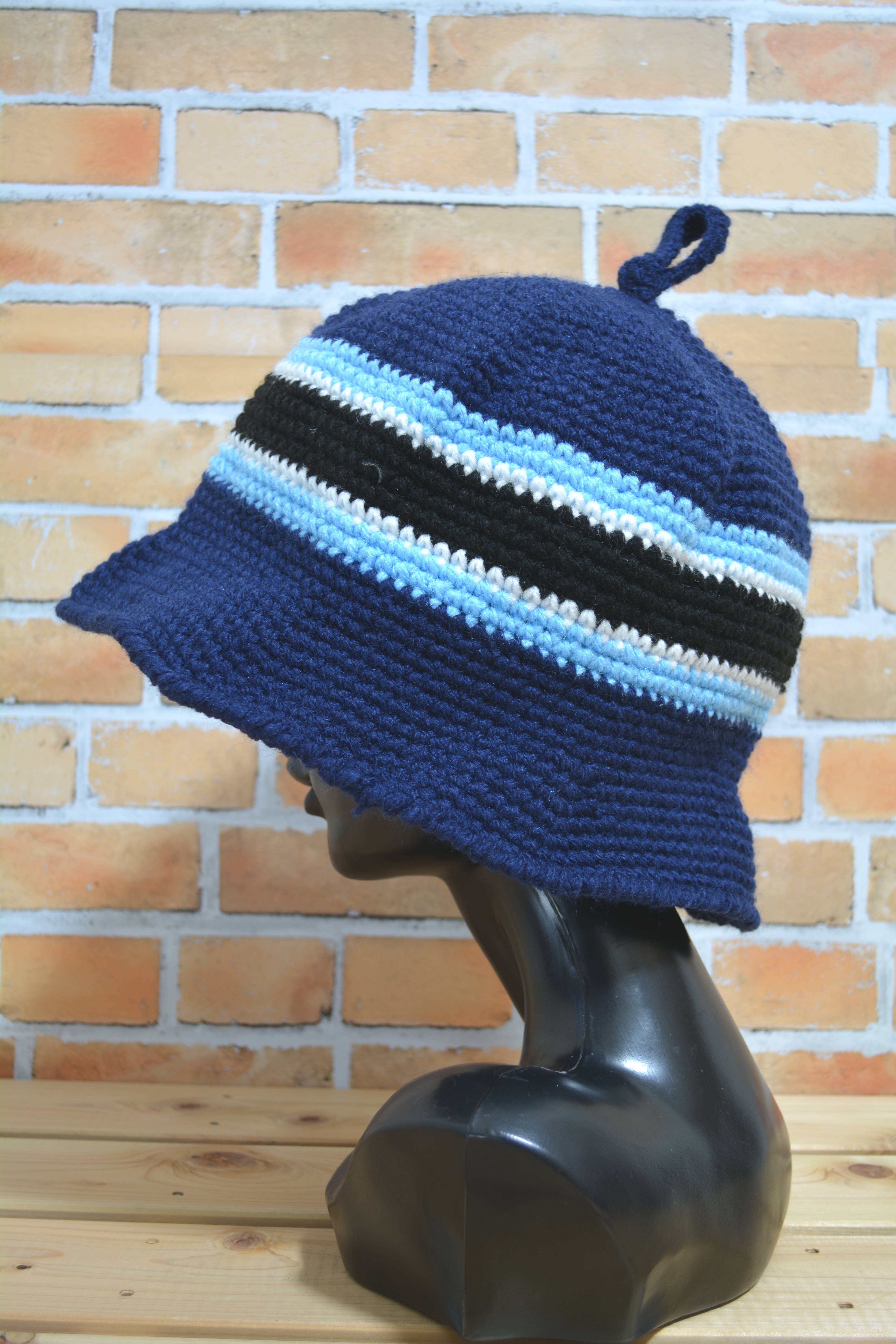 青系でまとめた、落ち着いた配色のハットです