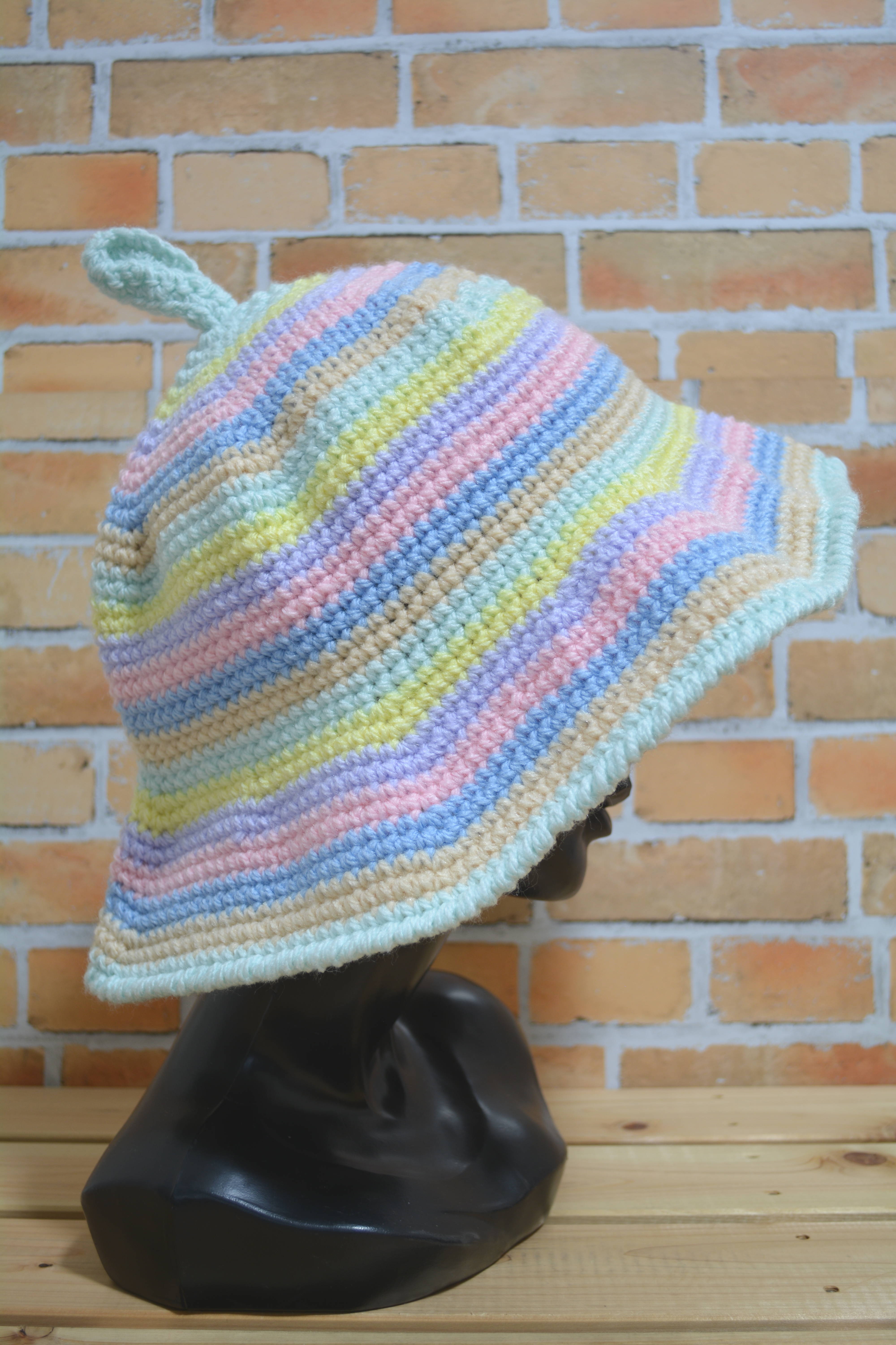 ニットでできたサウナハット パステルマルチ ツバ広ロング